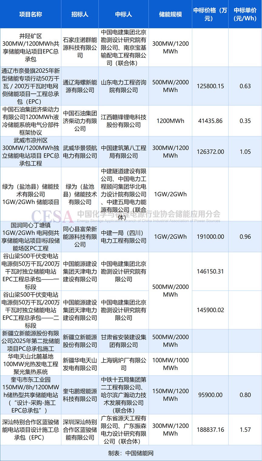 工商儲(chǔ):系統(tǒng)中標(biāo)均價(jià)0.7911元/Wh,EPC/PC中標(biāo)均價(jià)1.0625元/Wh。