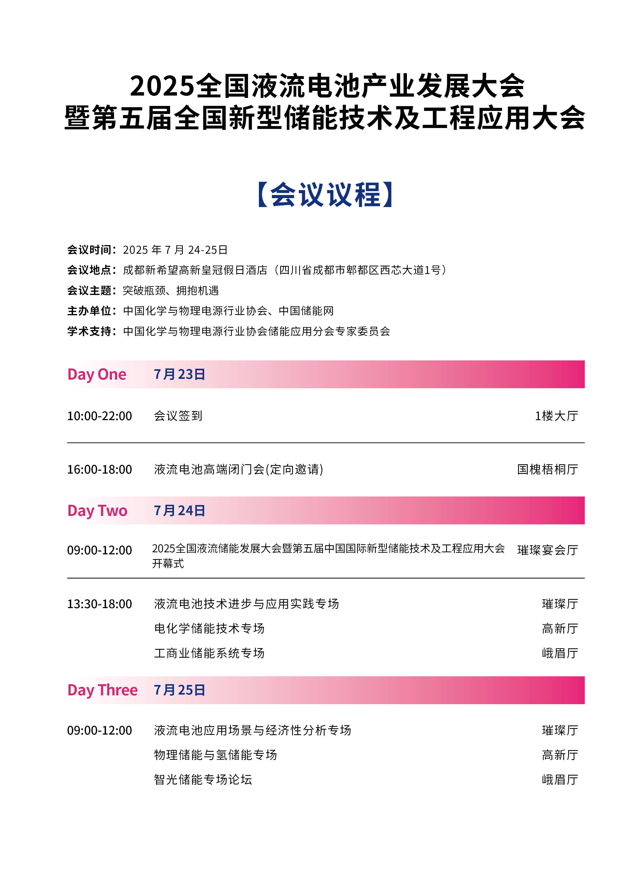 會(huì)議議題設(shè)置和嘉賓邀請(qǐng),以落實(shí)國(guó)家戰(zhàn)略、促進(jìn)行業(yè)發(fā)展和滿足企業(yè)需求為重要遵循,是集專(zhuān)題演講、展覽展示與產(chǎn)業(yè)鏈供應(yīng)鏈對(duì)接于一體的產(chǎn)業(yè)盛會(huì),并將舉辦液流電池高端閉門(mén)會(huì),討論行業(yè)關(guān)切的重大問(wèn)題,誠(chéng)邀會(huì)員單位參加!