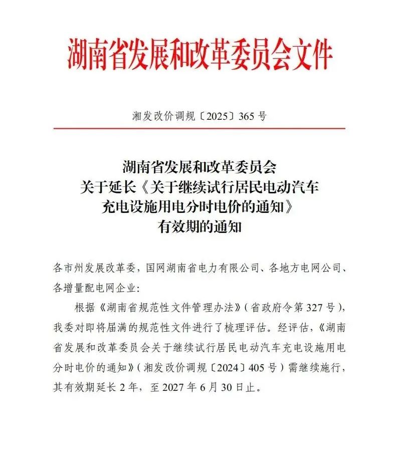 湖南省繼續(xù)試行居民充電設(shè)施用電分時(shí)電價(jià)政策