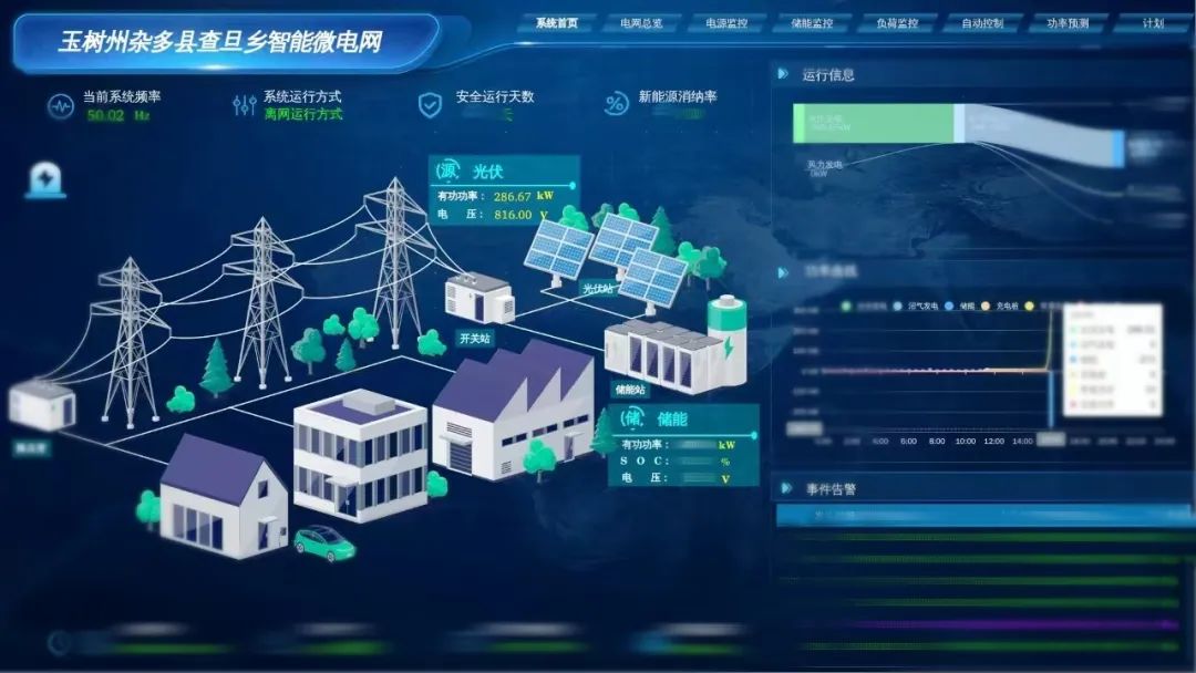 許繼電氣為該工程量身定制了一套行業(yè)領(lǐng)先的兆瓦級能源自治離網(wǎng)型微電網(wǎng)解決方案。其中,離網(wǎng)型微電網(wǎng)能量管理系統(tǒng)解決了離網(wǎng)型微電網(wǎng)多源異構(gòu)能源協(xié)同控制問題,實現(xiàn)微電網(wǎng)能源自治、一鍵自動黑啟動、可靠分級減載控制等技術(shù)突破,保障了微電網(wǎng)系統(tǒng)的可靠供電;新能源協(xié)調(diào)控制裝置實現(xiàn)對光伏逆變器和儲能變流器的毫秒級精準(zhǔn)調(diào)控,強(qiáng)力支撐頻率與電壓穩(wěn)定,保障關(guān)鍵負(fù)荷持續(xù)可靠供電;配網(wǎng)融合終端+磁控開關(guān)+費(fèi)控系統(tǒng)集中器實現(xiàn)了從臺區(qū)到用戶最小單元的精準(zhǔn)量測和控制,顯著提升電網(wǎng)韌性,實現(xiàn)離網(wǎng)型微電網(wǎng)的高效運(yùn)維。