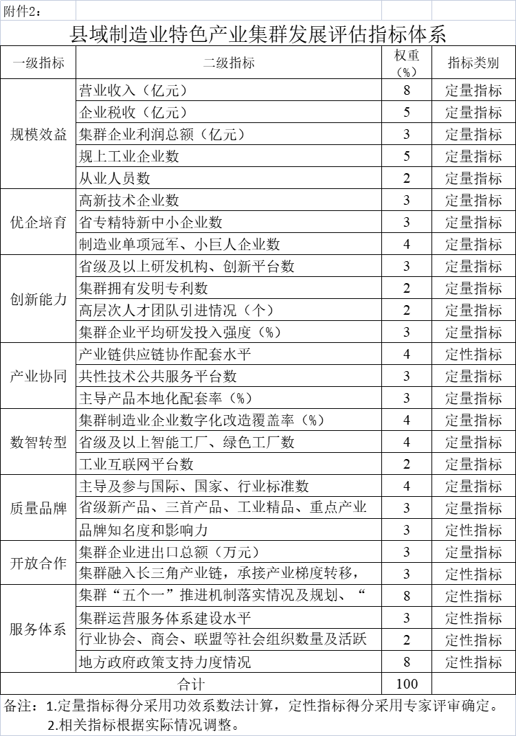 2. 縣域制造業(yè)特色產(chǎn)業(yè)集群發(fā)展評估指標體系