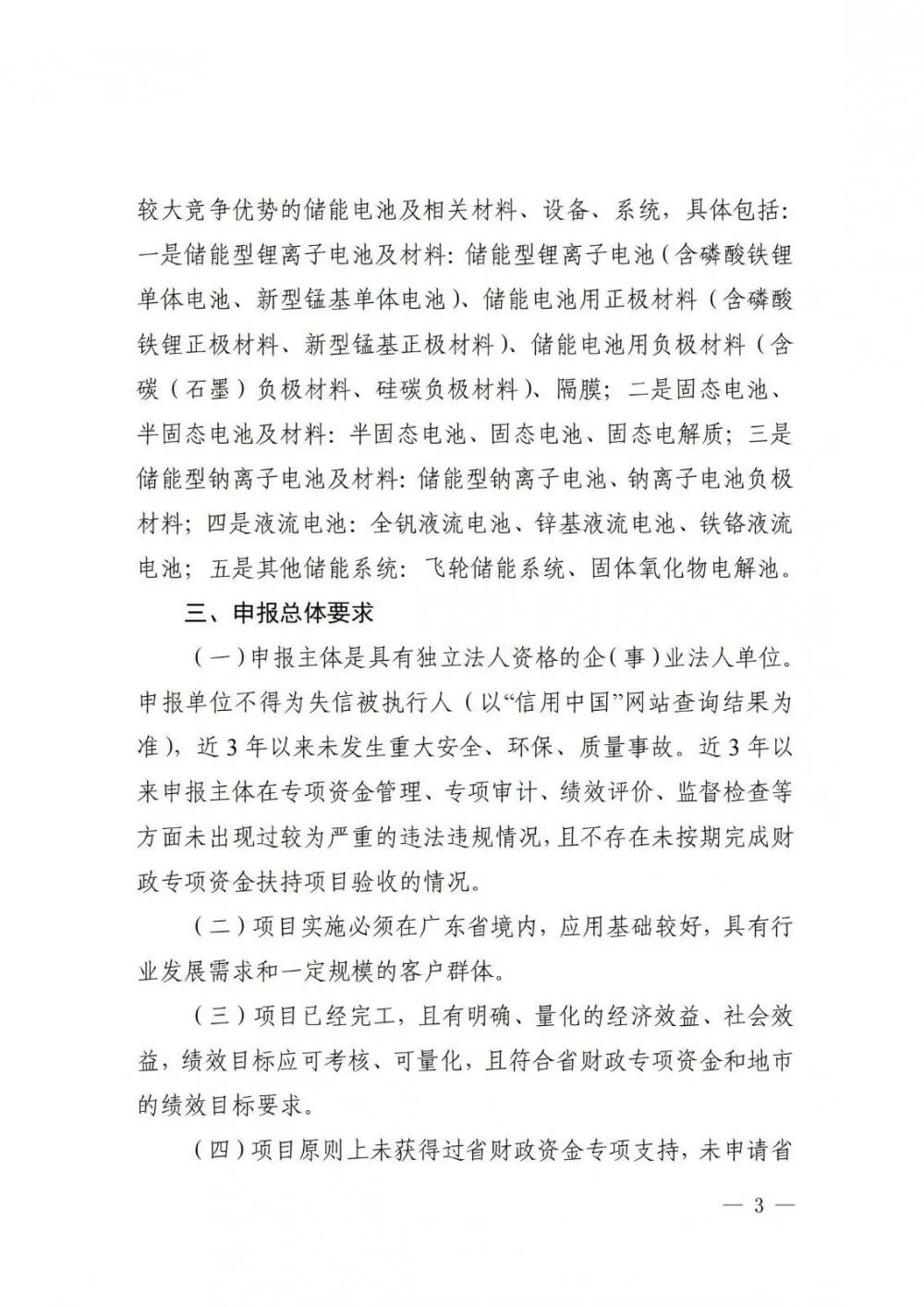 方向4:新型儲能產(chǎn)業(yè)化項目。支持新型儲能產(chǎn)業(yè)領(lǐng)域具備較大競爭優(yōu)勢的儲能電池及相關(guān)材料、設(shè)備、系統(tǒng),具體包括:一是儲能型鋰離子電池及材料:儲能型鋰離子電池(含磷酸鐵鋰單體電池、新型錳基單體電池)、儲能電池用正極材料(含磷酸鐵鋰正極材料、新型錳基正極材料)、儲能電池用負極材料(含碳(石墨)負極材料、硅碳負極材料)、隔膜;二是固態(tài)電池、半固態(tài)電池及材料:半固態(tài)電池、固態(tài)電池、固態(tài)電解質(zhì);三是儲能型鈉離子電池及材料:儲能型鈉離子電池、鈉離子電池負極材料;四是液流電池:全釩液流電池、鋅基液流電池、鐵鉻液流電池;五是其他儲能系統(tǒng):飛輪儲能系統(tǒng)、固體氧化物電解池。