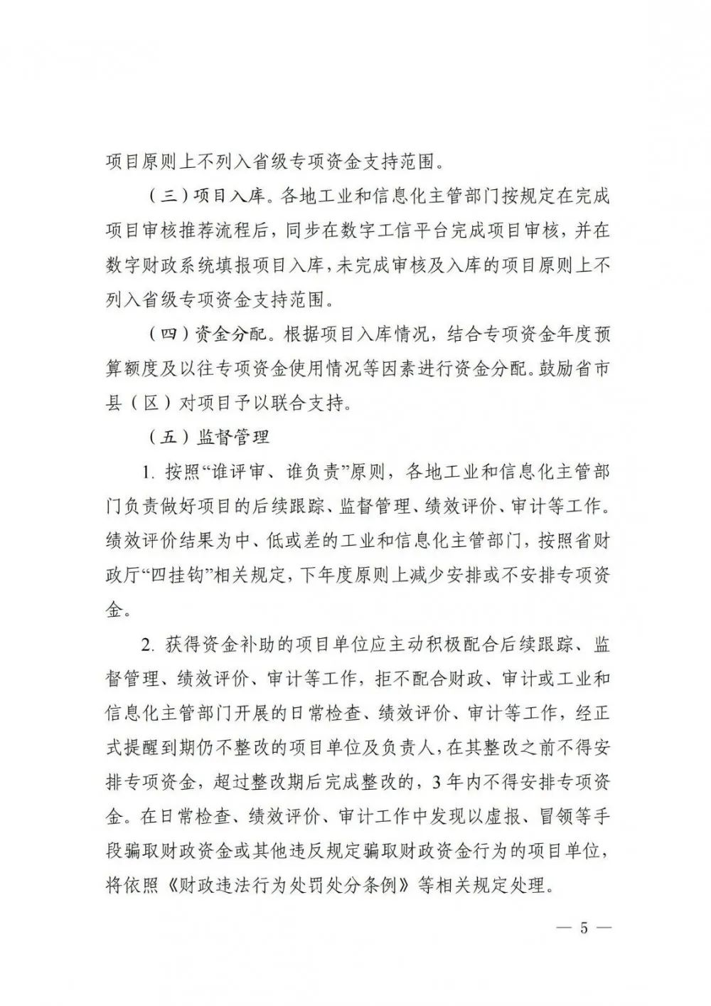 2.獲得資金補助的項目單位應主動積極配合后續(xù)跟蹤、監(jiān)督管理、績效評價、審計等工作,拒不配合財政、審計或工業(yè)和信息化主管部門開展的日常檢查、績效評價、審計等工作,經(jīng)正式提醒到期仍不整改的項目單位及負責人,在其整改之前不得安排專項資金,超過整改期后完成整改的,3年內(nèi)不得安排專項資金。在日常檢查、績效評價、審計工作中發(fā)現(xiàn)以虛報、冒領(lǐng)等手段騙取財政資金或其他違反規(guī)定騙取財政資金行為的項目單位,將依照《財政違法行為處罰處分條例》等相關(guān)規(guī)定處理。