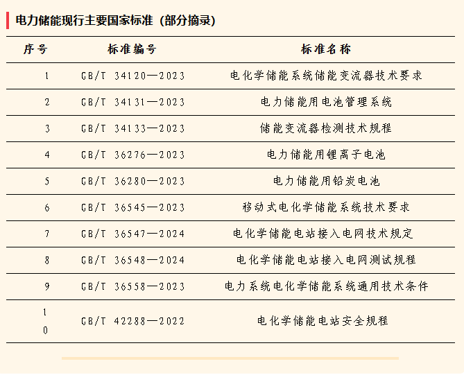 當(dāng)前我國儲(chǔ)能領(lǐng)域步入關(guān)鍵的標(biāo)準(zhǔn)化發(fā)展階段,標(biāo)準(zhǔn)體系基本完備,涵蓋基礎(chǔ)通用、規(guī)劃設(shè)計(jì)、施工及驗(yàn)收、運(yùn)行與維護(hù)、檢修、設(shè)備及試驗(yàn)、安全環(huán)保、技術(shù)管理等方面。2024年全國電力儲(chǔ)能標(biāo)委會(huì)發(fā)布電化學(xué)儲(chǔ)能相關(guān)國家標(biāo)準(zhǔn)18項(xiàng)、行業(yè)標(biāo)準(zhǔn)3項(xiàng)。《報(bào)告》也對(duì)系列標(biāo)準(zhǔn)進(jìn)行了列舉,方便查閱參考。