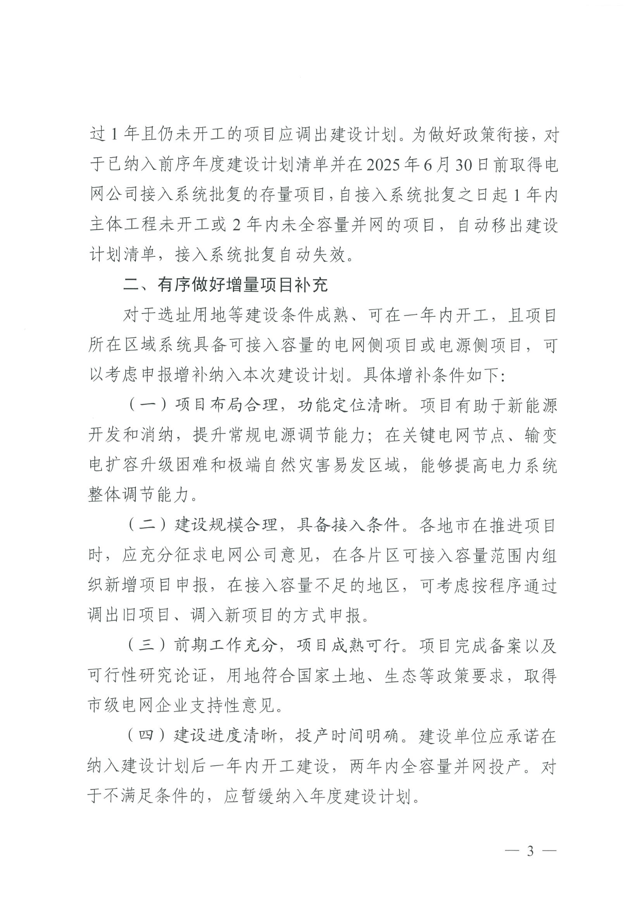 建設(shè)單位應(yīng)承諾在納入建設(shè)計(jì)劃后一年內(nèi)開工建設(shè),兩年內(nèi)全容量并網(wǎng)投產(chǎn)。對(duì)于不滿足條件的,應(yīng)暫緩納入年度建設(shè)計(jì)劃。