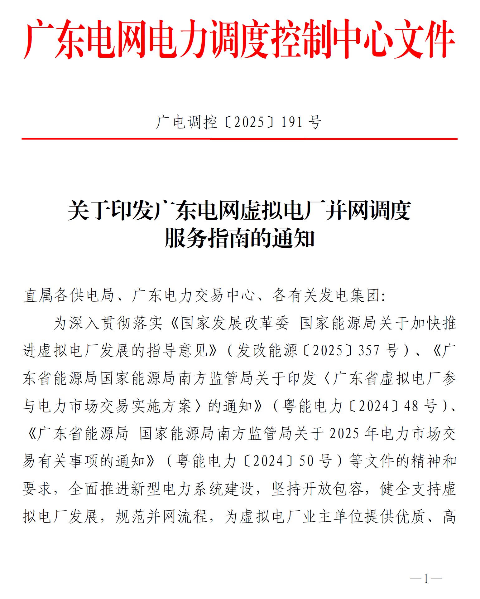 關于印發(fā)廣東電網虛擬電廠并網調度服務指南的通知