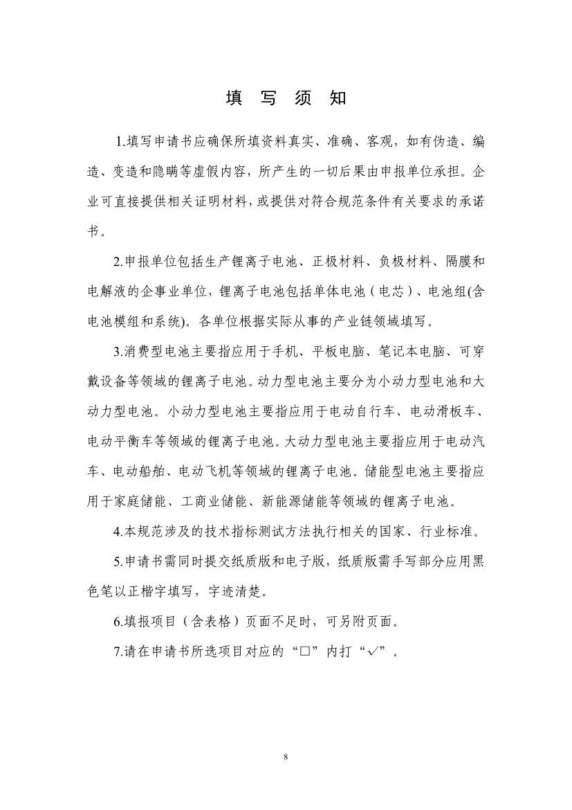申報企業(yè)的范圍包括鋰離子電池、正極材料、負(fù)極材料、隔膜、電解液生產(chǎn)企業(yè),鋰離子電池包括單體電池極(電芯)和電池組(含電池模組和系統(tǒng))。