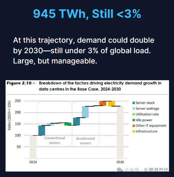 圖丨數(shù)據(jù)中心電力需求增長驅(qū)動(dòng)因素,2024-2030,945TWh仍然不足全球負(fù)荷的3%。