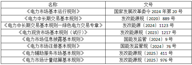 表:全國統(tǒng)一電力市場“1+6”基礎規(guī)則體系