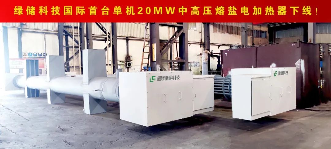 2024年5月25日,用于金塔項目的綠儲科技自主研發(fā)的全球首臺單機20MW熔鹽電加熱器成功下線;