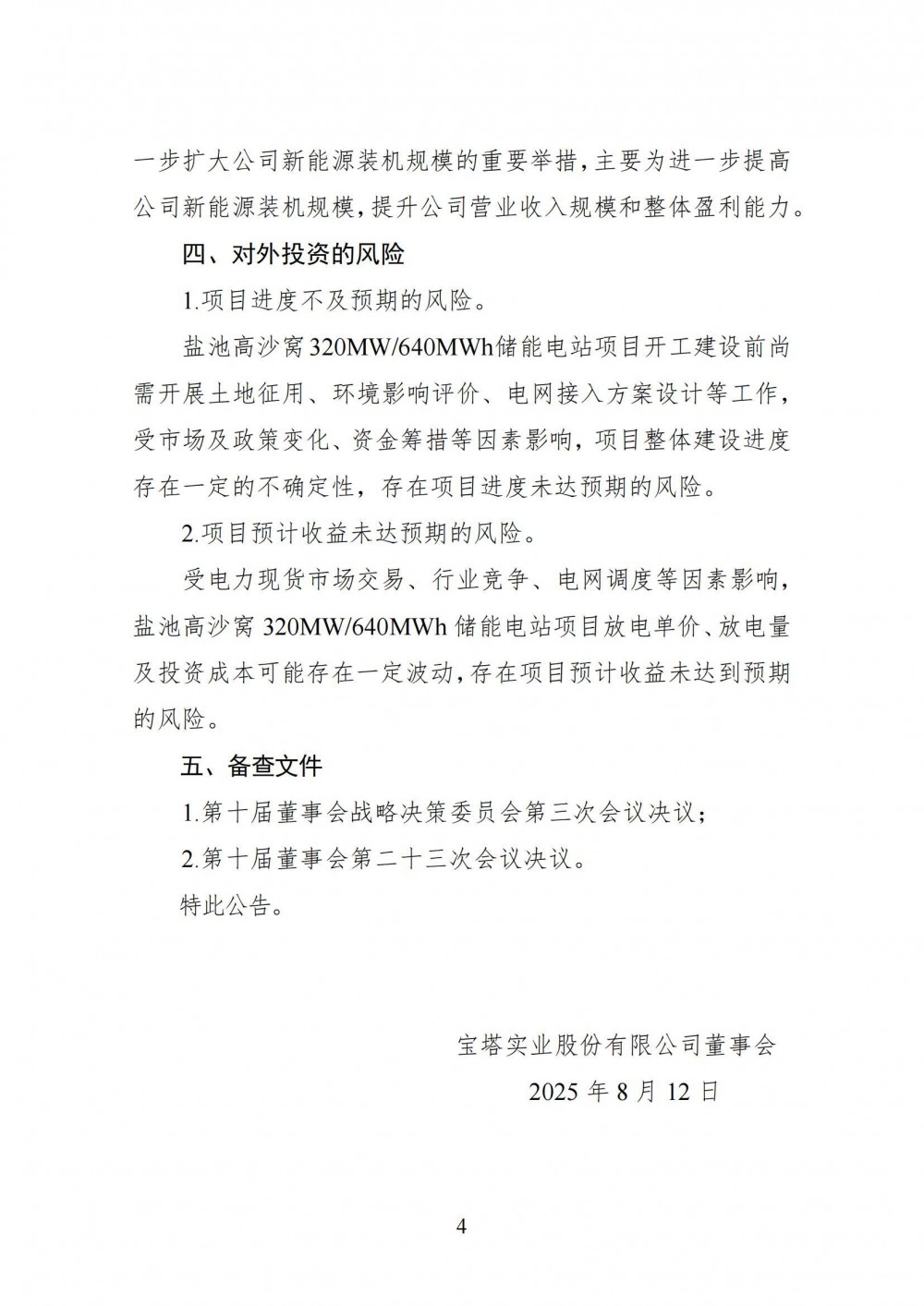 寶塔實(shí)業(yè)表示,鹽池高沙窩320MW/640MWh儲能電站項(xiàng)目建設(shè)系公司根據(jù)《自治區(qū)發(fā)展改革委關(guān)于推進(jìn)特色優(yōu)勢產(chǎn)業(yè)綠電園區(qū)儲能設(shè)施建設(shè)的通知》的要求,構(gòu)建“清潔低碳、安全高效”的現(xiàn)代能源產(chǎn)業(yè)體系,積極響應(yīng)自治區(qū)大力開發(fā)可再生能源政策、進(jìn)一步擴(kuò)大公司新能源裝機(jī)規(guī)模的重要舉措,主要為進(jìn)一步提高公司新能源裝機(jī)規(guī)模,提升公司營業(yè)收入規(guī)模和整體盈利能力。