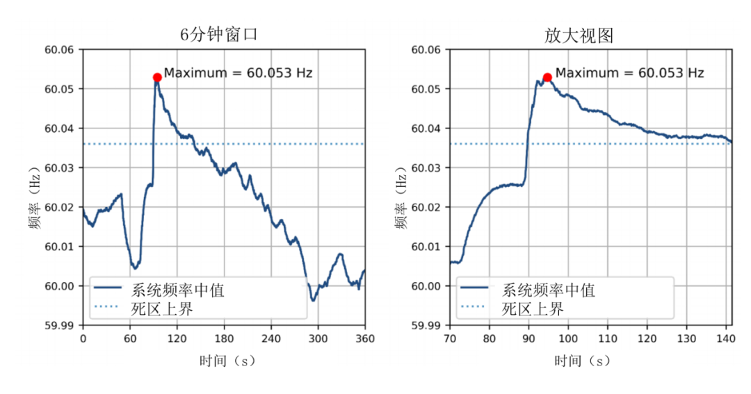 圖6:2024年7月10日東部互聯(lián)電網(wǎng)1500兆瓦大型負(fù)荷損失/轉(zhuǎn)移事件頻率響應(yīng)曲線