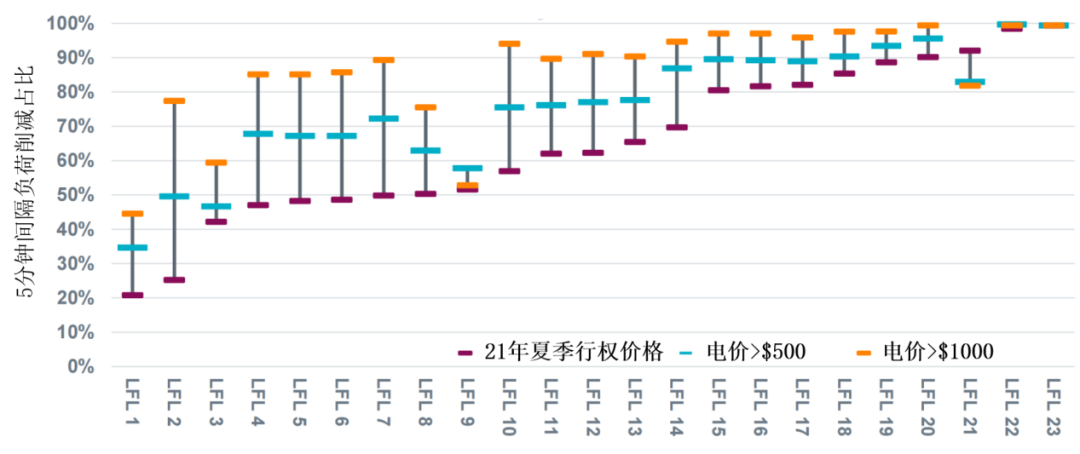 圖7:不同電價觸發(fā)的大型負(fù)荷削減占比(2023年9月到2024年2月)。不同的大型靈活負(fù)荷(LFL)在價格響應(yīng)性方面差異顯著[4]