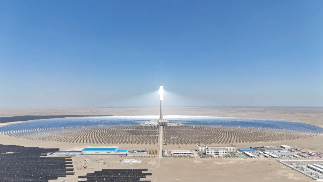 該光熱電站于2025年5月28日成功并網(wǎng)發(fā)電,并于2025年7月10日實(shí)現(xiàn)全流程貫通。隨后在11天內(nèi),電站即實(shí)現(xiàn)了滿負(fù)荷運(yùn)行,并于7月21日實(shí)現(xiàn)單日發(fā)電量102.4萬(wàn)kWh。7月10至8月15日期間(包括9個(gè)陰雨天、17個(gè)多云天),電站累計(jì)運(yùn)行26天,累計(jì)發(fā)電時(shí)長(zhǎng)391.2小時(shí),累計(jì)發(fā)電量1554.8萬(wàn)kWh。
