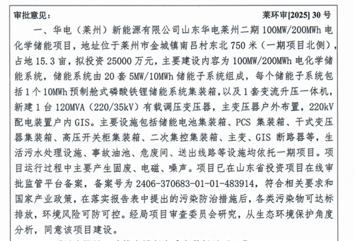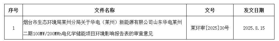 中國儲能網(wǎng)訊:8月18日,山東煙臺市生態(tài)環(huán)境局萊州分局公告,關(guān)于華電(萊州)新能源有限公司山東華電萊州二期100MW/200MWh電化學(xué)儲能項目環(huán)境影響報告表的審查意見。