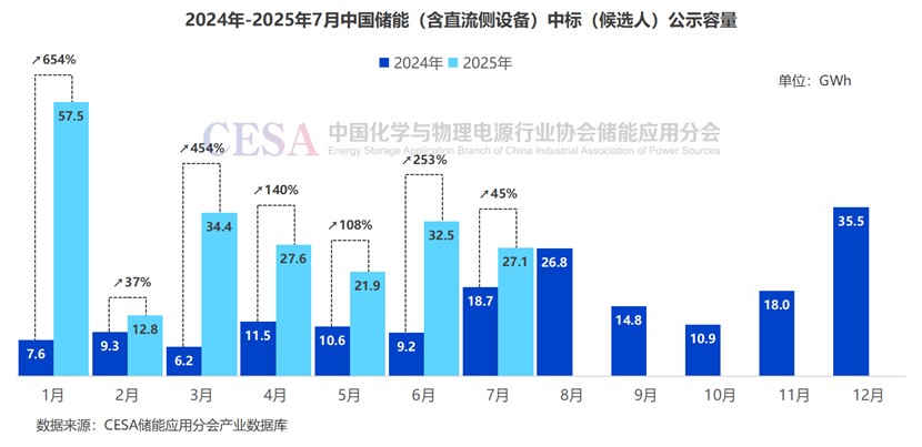 2025年1-7月儲(chǔ)能(含直流側(cè)設(shè)備)采招落地總規(guī)模已超過200GWh。