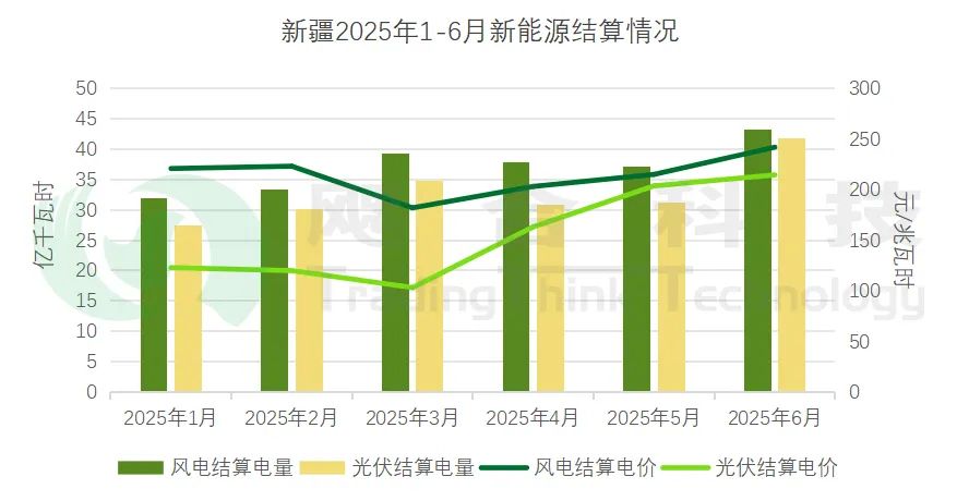 2025年1-6月新疆省內(nèi)綠電結(jié)算電量23.66億千瓦時(shí),結(jié)算均價(jià)202.33元/兆瓦時(shí)。