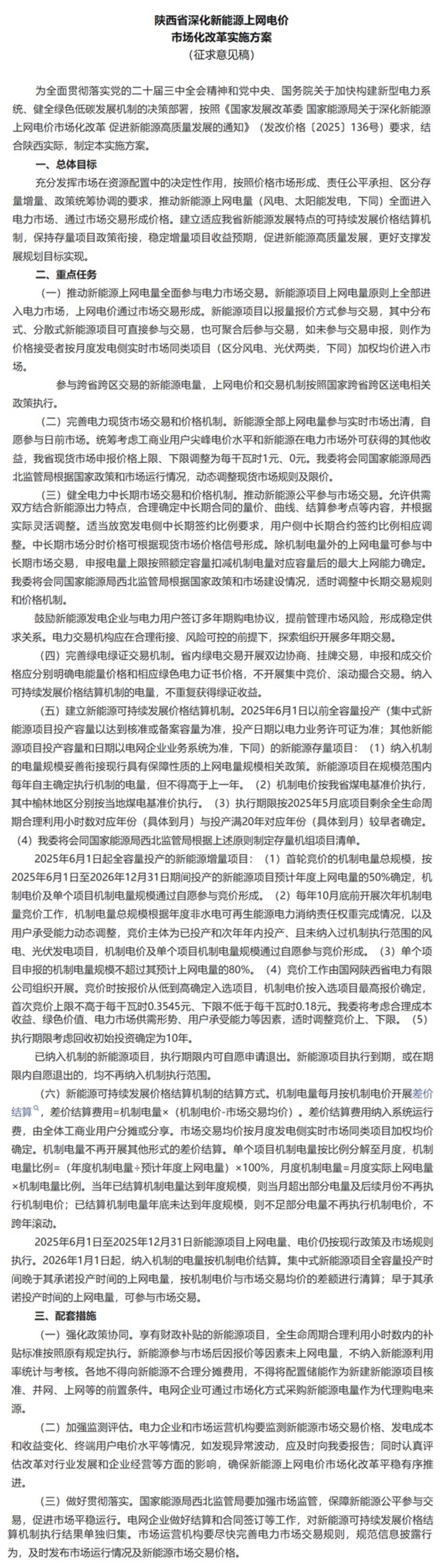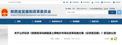 中國儲能網(wǎng)訊:9月3日,陜西省發(fā)改委一紙公告點燃新能源市場——《陜西省深化新能源上網(wǎng)電價市場化改革實施方案(征求意見稿)》的發(fā)布,不僅標志著陜西新能源全面入市的改革大幕正式拉開,更以“配儲非前置條件”“增量項目競價定電價”“現(xiàn)貨市場限價動態(tài)調(diào)整”三大核心舉措,為儲能行業(yè)撕開了一條從政策依賴向市場驅(qū)動轉(zhuǎn)型的突圍之路。