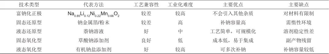 表1 各種預(yù)鈉化技術(shù)對(duì)比