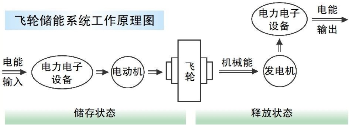 中國儲(chǔ)能網(wǎng)訊:飛輪儲(chǔ)能是機(jī)械儲(chǔ)能的一種,通過飛輪實(shí)現(xiàn)機(jī)械能與電能的能量轉(zhuǎn)換,包括能量儲(chǔ)存、釋放和保持三種工作狀態(tài)。儲(chǔ)存狀態(tài)下,電動(dòng)機(jī)帶動(dòng)飛輪轉(zhuǎn)子加速運(yùn)轉(zhuǎn),將輸入的電能轉(zhuǎn)化為機(jī)械能儲(chǔ)存在旋轉(zhuǎn)體中;釋放狀態(tài)下,飛輪利用慣性帶動(dòng)發(fā)電機(jī)發(fā)電,實(shí)現(xiàn)機(jī)械能到電能的轉(zhuǎn)變;保持狀態(tài)下,飛輪系統(tǒng)依靠最小的能量輸入維持系統(tǒng)運(yùn)行。