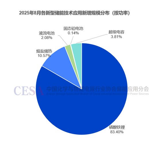 從儲(chǔ)能技術(shù)路線來(lái)看,8月新增投運(yùn)儲(chǔ)能項(xiàng)目中,磷酸鐵鋰電池儲(chǔ)能技術(shù)仍是主流,總規(guī)模達(dá)2.37GW/5.81GWh,功率占比83.4%。