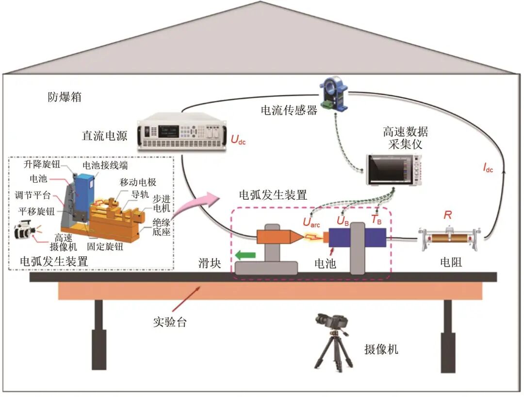 在全球能源需求持續(xù)激增和氣候變化日益嚴(yán)峻的背景下,世界各國都在推動儲能電力系統(tǒng)的發(fā)展,以適應(yīng)大規(guī)模和高比例的可再生能源應(yīng)用。儲能技術(shù)在緩解可再生能源波動、削峰填谷、調(diào)節(jié)頻率和電壓以及改善電能質(zhì)量方面具有顯著優(yōu)勢。儲能電站主要包括電池系統(tǒng)、電池管理系統(tǒng)(EMS)、電力系統(tǒng)、冷卻與溫控系統(tǒng)、安全與保護(hù)系統(tǒng)等。然而,電池受到熱、電、機(jī)械等濫用條件作用,存在自身缺陷或在老化破損等原因時,極易發(fā)生熱失控(TR),導(dǎo)致鋰離子電池(LIBs)溫度呈現(xiàn)不可控上升,常伴隨著H2、CO、CH4等氣體釋放。當(dāng)這些混合氣體在有限空間中遇到引火源或達(dá)到自燃溫度時極易發(fā)生火災(zāi)爆炸事故。近年來,各國頻發(fā)的儲能電池?zé)崾Э厥鹿剩粌H嚴(yán)重影響鋰離子電池在電化學(xué)儲能電站中的大規(guī)模應(yīng)用,也會對人民生命財產(chǎn)造成巨大威脅。在韓國光伏儲能多起火災(zāi)(2019)、澳大利亞儲能系統(tǒng)爆燃(2021)、美國亞利桑那州儲能電站事故(2022)等的調(diào)查中發(fā)現(xiàn),由電池?zé)崾Э?、高壓沖擊、冷卻液泄漏等原因?qū)е碌碾娀」收?,電弧溫度高達(dá)6000 K,遠(yuǎn)超儲能系統(tǒng)常用材料(鋼、鋁、銅等)熔點(diǎn),因其高溫、高能量等特點(diǎn)極大增加了儲能電池?zé)崾Э厥鹿实奈:Τ潭取R虼?,深入研究儲能電站中的電弧故障,明確電弧致災(zāi)機(jī)理及路徑,可為后續(xù)儲能電站中有針對性的安全防護(hù)設(shè)計提供參考,進(jìn)而降低儲能電站大規(guī)模事故發(fā)生的概率。