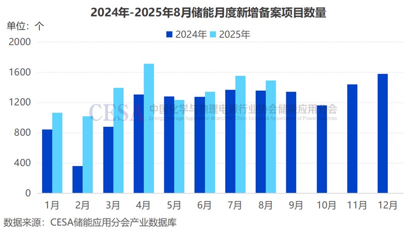 2025年1-8月國內(nèi)新增備案新型儲能項目數(shù)量已高達10822個,數(shù)量同比增長24.56%。