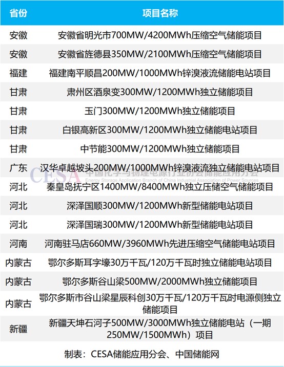 表 2025年8月國內(nèi)新增GWh級儲能備案項目