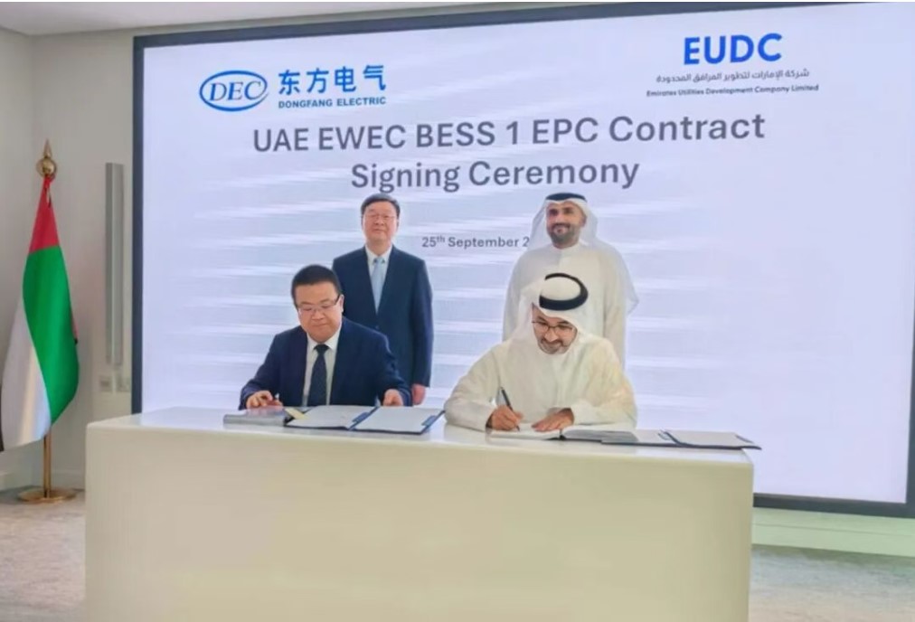 近日,東方電氣集團與阿聯(lián)酋公用設(shè)施開發(fā)公司首在阿聯(lián)酋能源部正式簽署阿聯(lián)酋BESS1電池儲能項目EPC總承包合同。