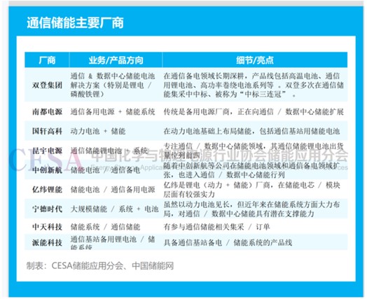 通信儲能產(chǎn)業(yè)鏈參與者眾多,涵蓋了需求方、方案提供方和技術(shù)支撐方。主要包括: