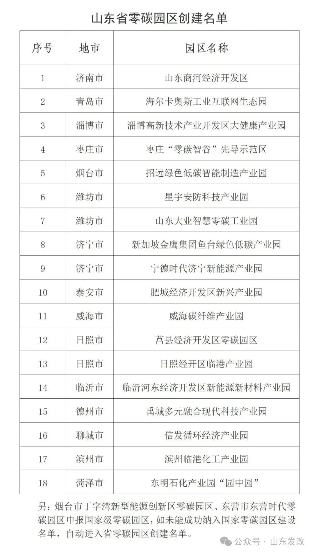 關(guān)于公布山東省零碳園區(qū)創(chuàng)建名單的通知