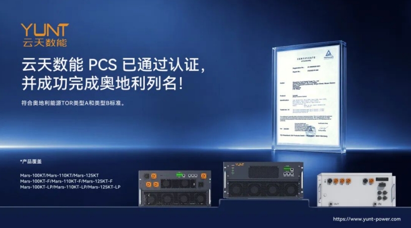 中國(guó)儲(chǔ)能網(wǎng)訊:云天數(shù)能 Mars 系列工商業(yè)儲(chǔ)能 PCS 成功通過(guò)奧地利 Oesterreichs Energie 認(rèn)證,近日已完成 125kW 風(fēng)冷與液冷 PCS 產(chǎn)品列名,標(biāo)志著品牌正式獲得奧地利市場(chǎng)準(zhǔn)入資格。