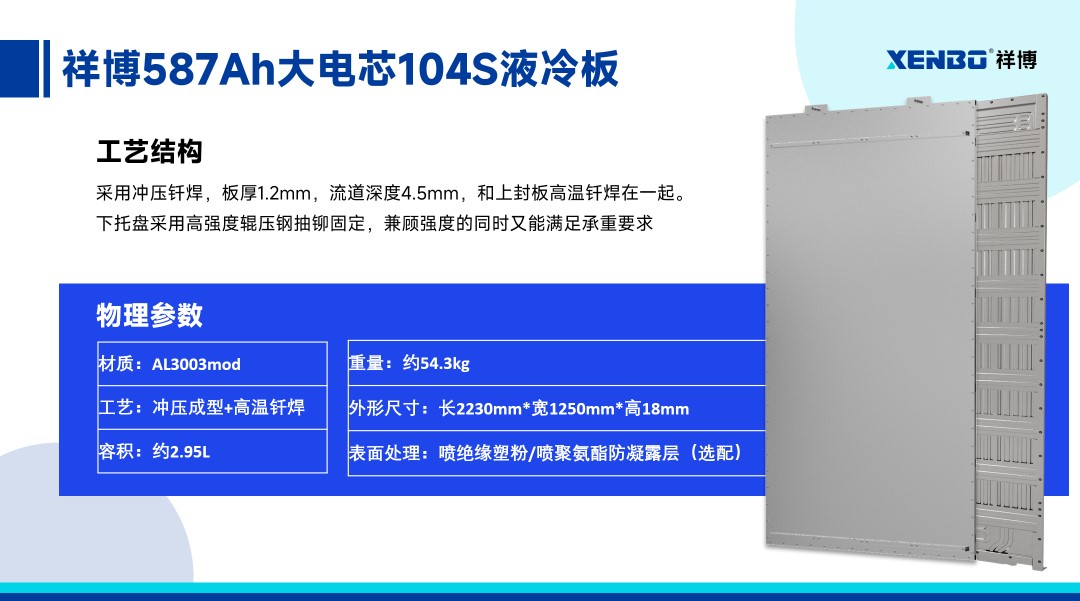 熱管理系統(tǒng)對于587電芯104S pack包的性能和壽命至關(guān)重要,今年以來,針對大容量電芯的特點(diǎn)和需求,祥博傳熱科技、安徽易新能科技均推出了適配587Ah、600Ah+、700Ah+電芯的大電芯104S液冷板。