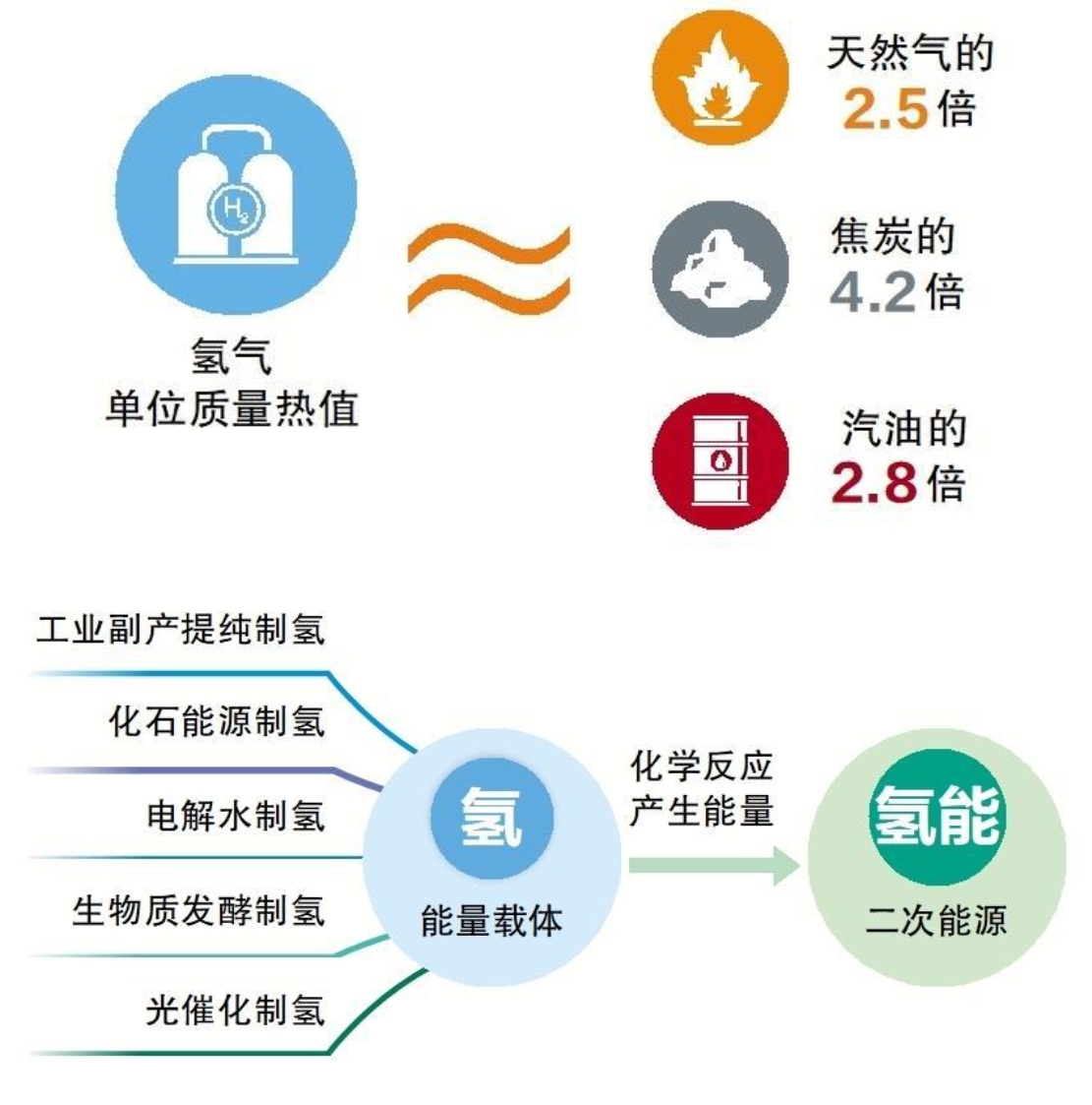 氫儲量豐富,來源廣泛,能夠滿足大規(guī)模應(yīng)用需求。在氫的應(yīng)用過程中,氫與氧反應(yīng)只生成能量和水,氫在燃料電池電化學(xué)反應(yīng)過程中或是作為工業(yè)原料,都不會產(chǎn)生污染物和二氧化碳,可以真正實現(xiàn)零碳排放。