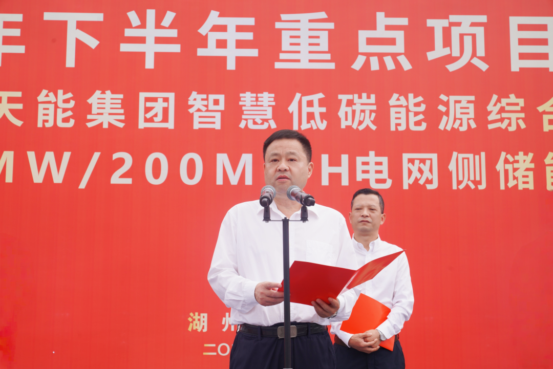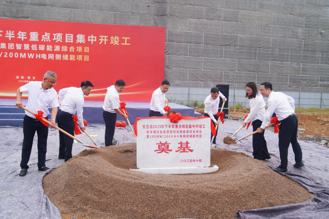 在青山綠水間,天能孝豐智慧低碳綜合能源項目正式破土動工。這座規(guī)劃100MW/200MWh的電網(wǎng)側儲能電站,如一座現(xiàn)代“能量方舟”,將在這片熱土上守護萬家燈火。天能控股集團副董事長周建中等出席儀式,共同揮鍬培土為項目奠基。