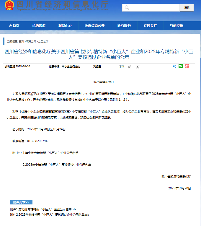 中國儲能網(wǎng)訊:2025年10月20日,四川省經(jīng)濟(jì)和信息化廳官網(wǎng)公示了“關(guān)于四川省第七批專精特新“小巨人”企業(yè)和2025年專精特新“小巨人”復(fù)核通過企業(yè)名單的公示”( 2025年第57號)。