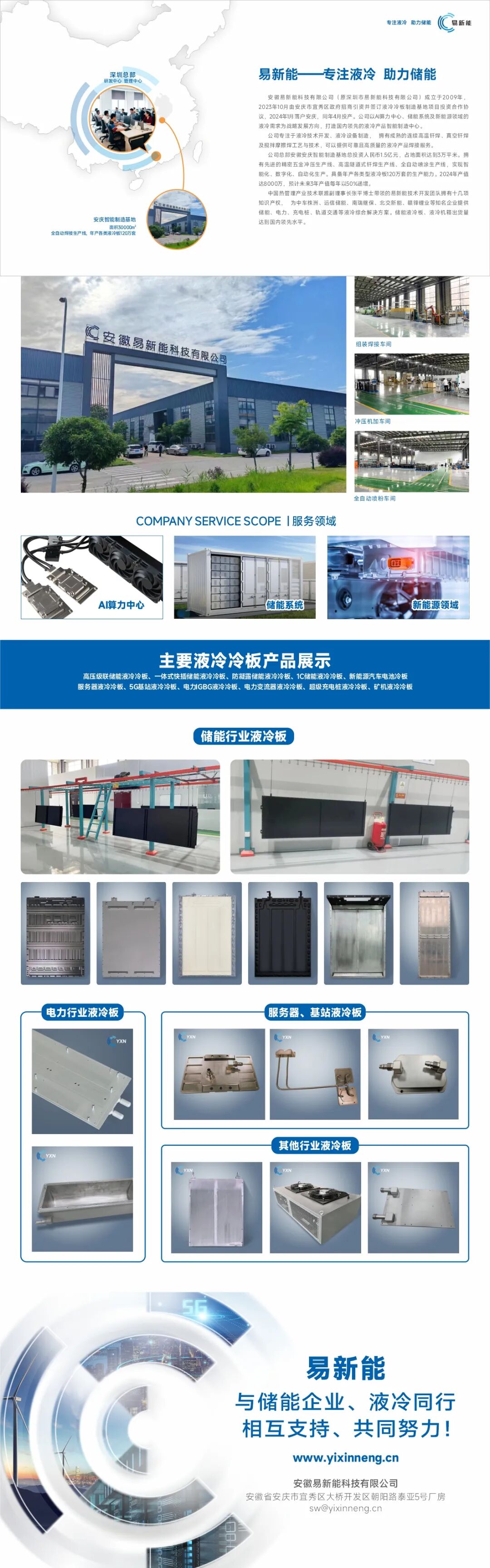 易新能公司的液冷板產(chǎn)品憑借其卓越的性能和可靠的質(zhì)量,已經(jīng)在市場(chǎng)上獲得了廣泛的認(rèn)可和應(yīng)用。大電芯 104S 液冷板適配 587Ah、600Ah+、700Ah+ 電芯產(chǎn)品,更是受到了眾多儲(chǔ)能企業(yè)的關(guān)注和青睞。目前,公司已經(jīng)與多家行業(yè)頭部企業(yè)達(dá)成合作意向,將在多個(gè)大型儲(chǔ)能項(xiàng)目中應(yīng)用該產(chǎn)品。隨著儲(chǔ)能市場(chǎng)的不斷擴(kuò)大,大容量電芯的應(yīng)用將越來(lái)越廣泛,安徽易新能科技有限公司的大電芯 104S 液冷板適配大容量電芯產(chǎn)品有望在未來(lái)的市場(chǎng)中取得更大的成功,為全球能源轉(zhuǎn)型和可持續(xù)發(fā)展做出重要貢獻(xiàn)。