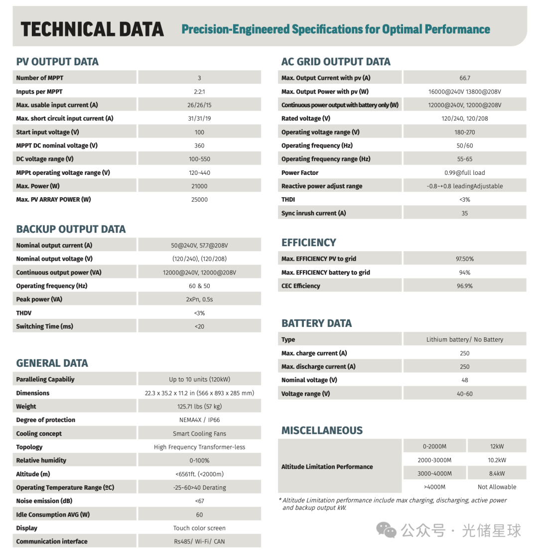 連續(xù)備用輸出功率為12kW,并網(wǎng)輸出功率最高可達16kW。
