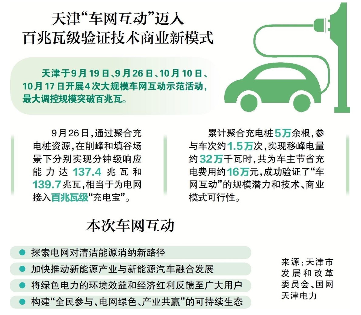 作為北方地區(qū)首次大型車網(wǎng)互動(dòng)綜合示范,天津市“車網(wǎng)互動(dòng)示范月”活動(dòng)聚焦新能源汽車與電網(wǎng)的智能互動(dòng),旨在探索多方共贏的車網(wǎng)互動(dòng)規(guī)?;瘧?yīng)用新技術(shù)與新模式,全面提升電網(wǎng)調(diào)節(jié)能力,為用戶提供綠電消費(fèi)新體驗(yàn)。