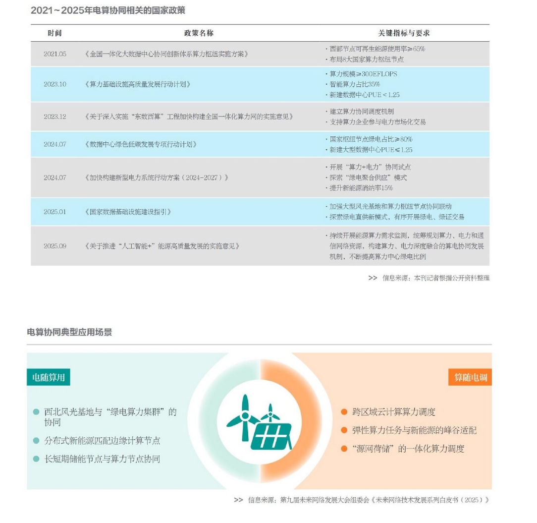 國家層面的電算協(xié)同體系仍處于探索完善階段。在跨區(qū)域電力網和算力網協(xié)同方面,系統(tǒng)性頂層設計正在構建中:交易層面,2024年發(fā)布的《電力中長期交易基本規(guī)則—綠色電力交易專章》已把數(shù)據中心綠電交易納入跨省區(qū)交易品類,累計完成數(shù)據中心綠電跨省交易42億千瓦時;但在調度層面,現(xiàn)階段“東數(shù)西算”與“西電東送”尚未形成機制合力,能源與信息領域的行業(yè)壁壘,導致跨區(qū)域、跨時間尺度的統(tǒng)一調度體系尚未建立。加之跨域算力調度可能引發(fā)的業(yè)務穩(wěn)定風險,算力服務商等主體參與協(xié)同的積極性不強。