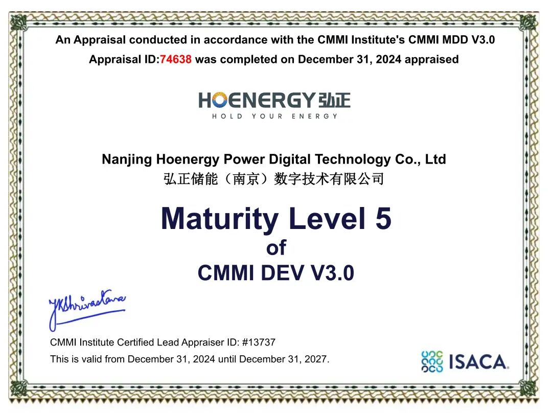 所有交付的底氣,源于弘正深耕數(shù)字化的長(zhǎng)期積累。弘正儲(chǔ)能(南京)數(shù)字技術(shù)有限公司已正式通過(guò)全球軟件領(lǐng)域“天花板”認(rèn)證——CMMI-DEV 3.0 5級(jí),標(biāo)志著企業(yè)在軟件研發(fā)、服務(wù)交付的標(biāo)準(zhǔn)化、成熟度上達(dá)到國(guó)際先進(jìn)水平。
