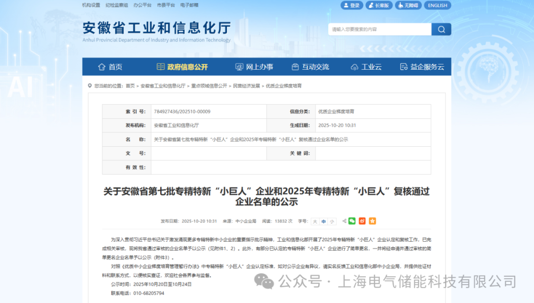 中國儲能網(wǎng)訊:近日,安徽省工業(yè)和信息化廳正式公布第七批專精特新“小巨人”企業(yè)名錄,上海電氣儲能科技有限公司(“電氣儲能”)憑借在細分領(lǐng)域的深耕實力與核心技術(shù)的創(chuàng)新突破成功入選,為國家綠色能源產(chǎn)業(yè)高質(zhì)量發(fā)展書寫生動注腳。