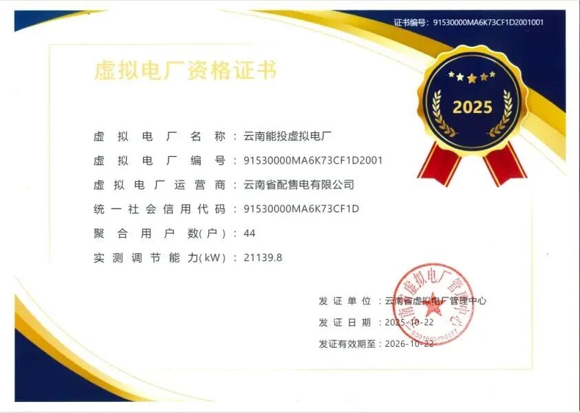 中國(guó)儲(chǔ)能網(wǎng)訊:近日,云南能投集團(tuán)所屬電投配售電公司通過(guò)嚴(yán)格資格核驗(yàn),成功獲得全省首批虛擬電廠運(yùn)營(yíng)牌照,成為省屬企業(yè)中唯一獲此認(rèn)證的市場(chǎng)主體。這一重要突破標(biāo)志著云南能投集團(tuán)在新能源賽道布局取得實(shí)質(zhì)性進(jìn)展,為云南新型電力系統(tǒng)建設(shè)注入新動(dòng)能。