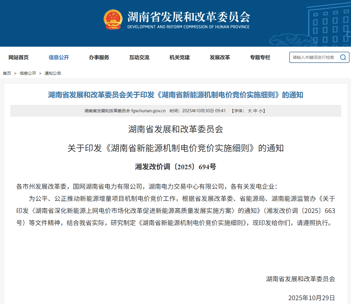 中國(guó)儲(chǔ)能網(wǎng)訊:10月30日,湖南省發(fā)改委印發(fā)《湖南省新能源機(jī)制電價(jià)競(jìng)價(jià)實(shí)施細(xì)則》。文件明確,原則上每年10月開(kāi)展新能源增量項(xiàng)目納入機(jī)制電價(jià)的競(jìng)價(jià)工作。