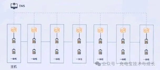 控制方式:EMS 通過通訊線向任意一臺機器發(fā)送開機指令,隨之該臺機器先建立電壓,然后依次向從機下發(fā)開機指令依次啟動,間隔30s。
