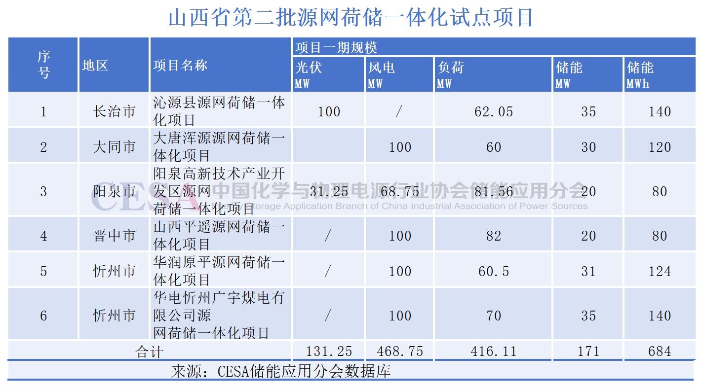 2023年6月,山西省公布了第一批源網(wǎng)荷儲一體化試點(diǎn)項目清單,包含9個項目,配置儲能153.5MW/614MWh。第一批項目新能源裝機(jī)規(guī)模899.6MW,負(fù)荷規(guī)模947MW。