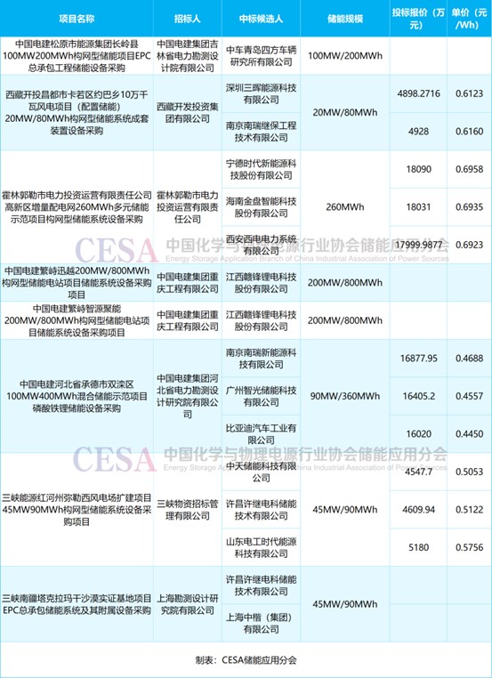 贛鋒鋰電、寧德時代、中天科技儲能系統(tǒng)中標(biāo)規(guī)模均超1GWh。