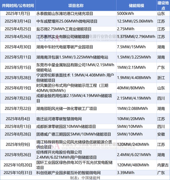 表2025年1-10月零碳園區(qū)并網(wǎng)項目
