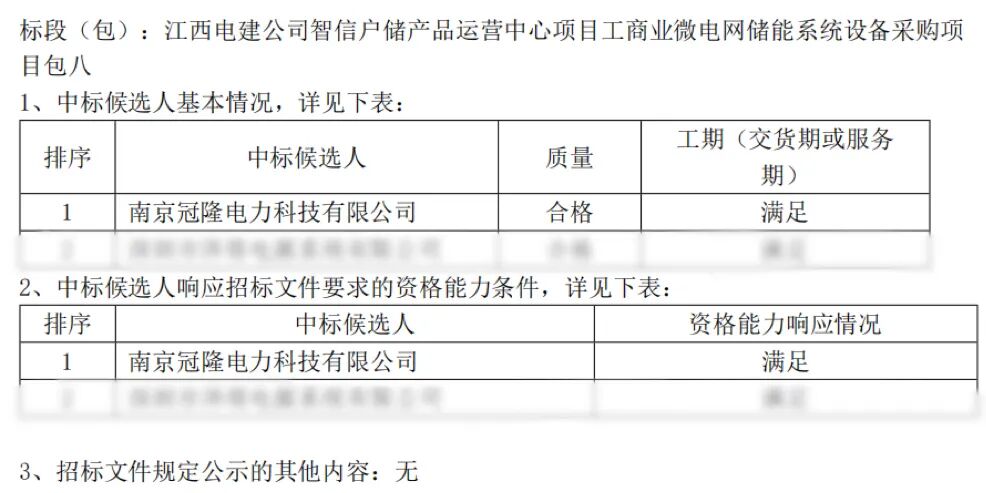中國(guó)儲(chǔ)能網(wǎng)訊:近日,中國(guó)電建集團(tuán)江西省電力建設(shè)有限公司(以下簡(jiǎn)稱江西電建)正式公布了智信戶儲(chǔ)產(chǎn)品運(yùn)營(yíng)中心項(xiàng)目工商業(yè)微電網(wǎng)儲(chǔ)能系統(tǒng)設(shè)備采購(gòu)項(xiàng)目的招標(biāo)結(jié)果,冠隆電力憑借專業(yè)的技術(shù)實(shí)力與行業(yè)口碑,成功中標(biāo)包二(250kW、500kW微電網(wǎng)儲(chǔ)能系統(tǒng)設(shè)備)、包八(500kW/1205kWh、1000kW/2410kWh微電網(wǎng)儲(chǔ)能系統(tǒng)設(shè)備)標(biāo)段。
