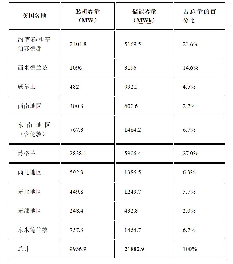 這占約克郡和亨伯賽德地區(qū)在建2.4GW/5.2GWh的一半以上規(guī)模,占英國(guó)總量的23.6%(僅次于蘇格蘭)。